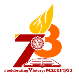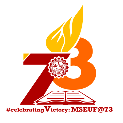 The MSEUF 73rd Foundation Anniversary Logo symbolizes the triumph of the University in offering quality education for 73 years and the University's persistence to lead and move forward. In graphical symbols, the logo displays two kinds of line, straight and curve. The straight line in number "7" in rising motion represents the "torch of education" with "EU" inscription in the flame, while the circular shape in number "3" incorporates inclusivity. Below is an open book that highlights the University's fundamental purpose - to produce graduates that can meet the competitive demands of a diverse, global and technologically advanced society. The logo is dominated by the colors maroon, orange and yellow - combined colors of "warmth and energy". At the center of the logo is the University seal. Under the logo is the inscription of the theme of the MSEUF 73rd Foundation Anniversary, "#celebratingVictory: MSEUF@73".